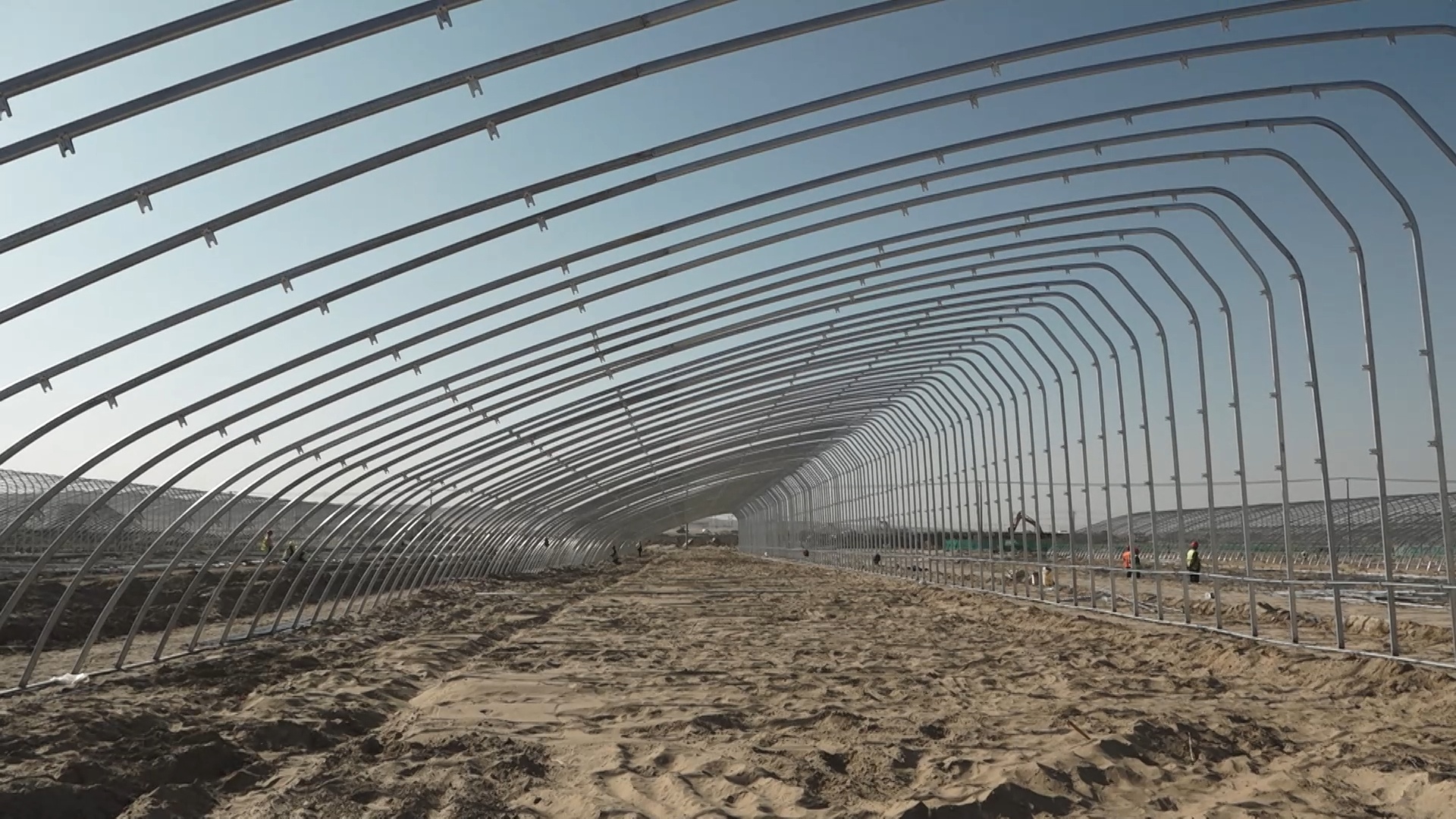 新疆农牧投集团联强农业公司党委委员、副总经理赵姜威介绍,新疆农牧投集团万亩戈壁(沙漠) 设备农业项目于本年8月8日正式开工,截止现在,主体工程已完结65%,估计本年年末交给使用。