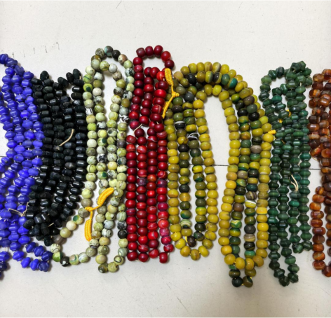 其次是打磨:选好原石后,通过切割、打磨等工序将其加工成大小适中、形状规则的珠子。打磨过程需要工匠具备精湛的技艺和耐心,以确保珠子表面十分光滑圆润,质感细腻。一般会先用粗砂纸初步打磨出形状,再用细砂纸逐步抛光,使珠子呈现出迷人的光泽。